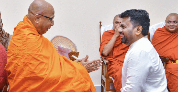 ජනාධිපති අනුර කුමාර දිසානායක මහතා නව වසරට ආශිර්වාද ලබාගැනීමේ අරමුණින් ශ්‍රී ලංකා රාමඤ්ඤ සහ අමරපුර මහා නිකායන්හි මහානායක හිමිවරුන් බැහැදකී.