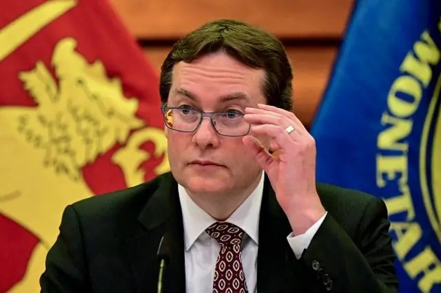 ශ්රී ලංකාව පිළිබඳ සිදු කළ තෙවැනි සමාලෝචනයට විධායක කමිටු අනුමැතිය ලැබීම සම්බන්ධයෙන් ඊයේ (04) වොෂිංටන් නුවරදී මාධ්ය හමුව පැවැති අතර ඒ සඳහා ශ්රී ලංකාවේ ජ්යෙෂ්ඨ දූත මණ්ඩල ප්රධානී පීටර් බෲවර්, නියෝජ්ය මෙහෙයුම් ප්රධානි කට්සියරිනා ස්විරිඩ්සෙන්කා සහ නේවාසික නියෝජිත මර්තා ටෙස්ෆායේ යන මහත්ම මහත්මීහු සහභාගී වූහ.